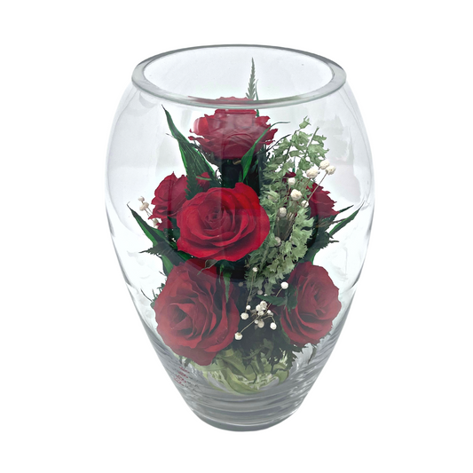 Timeless Red Roses in Taper-Up Glass Vase – Natural, Long-Lasting Elegance