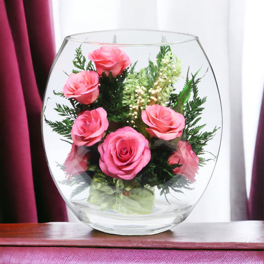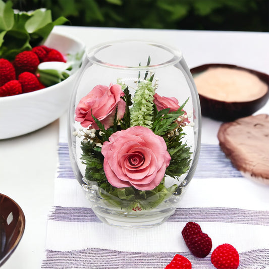 Bloom Beauty: Preserved Pink Roses in a Petite Glass Vase