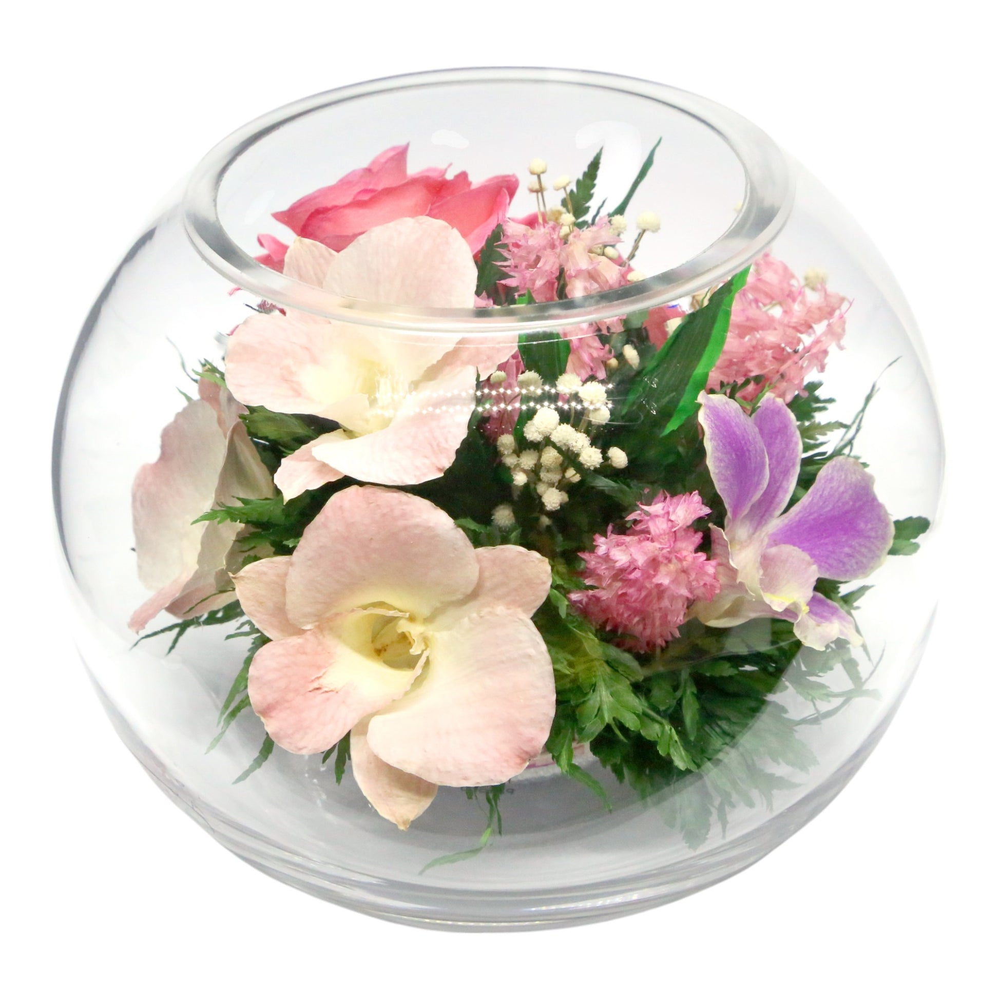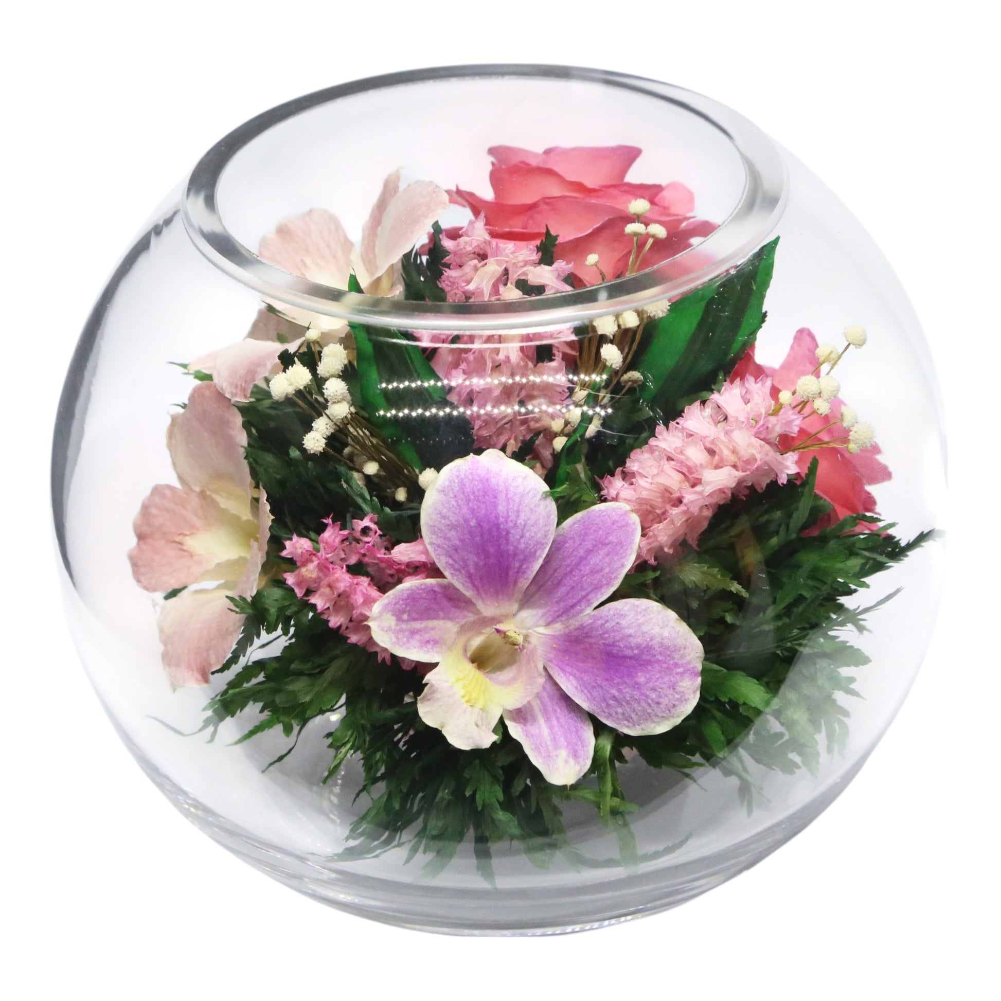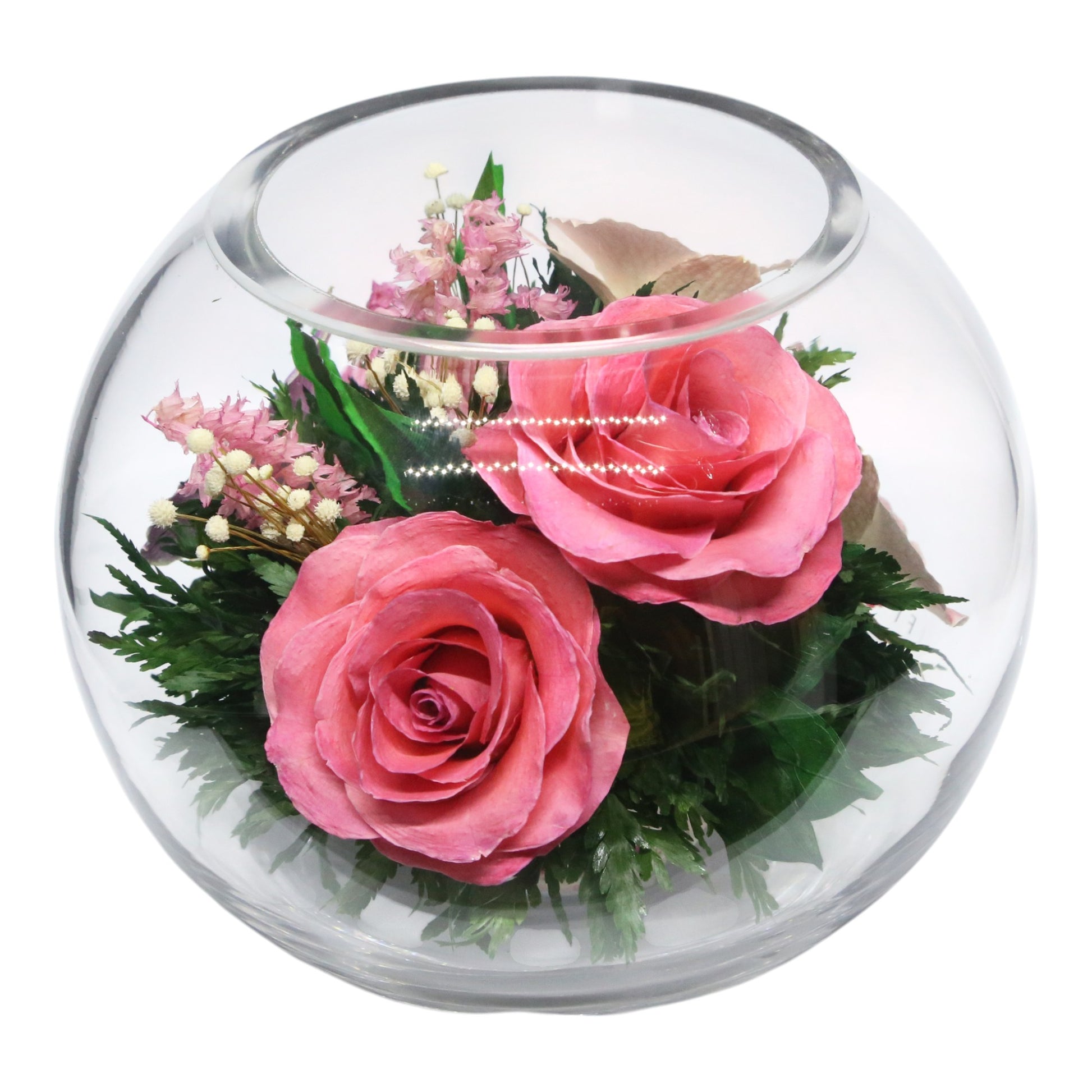 Note: Please, keep in mind that since these flowers are 100% natural, and our arrangements are 100% handmade. The actual color and single flower size inside the vase may slightly vary from the pictures on our on-line store.