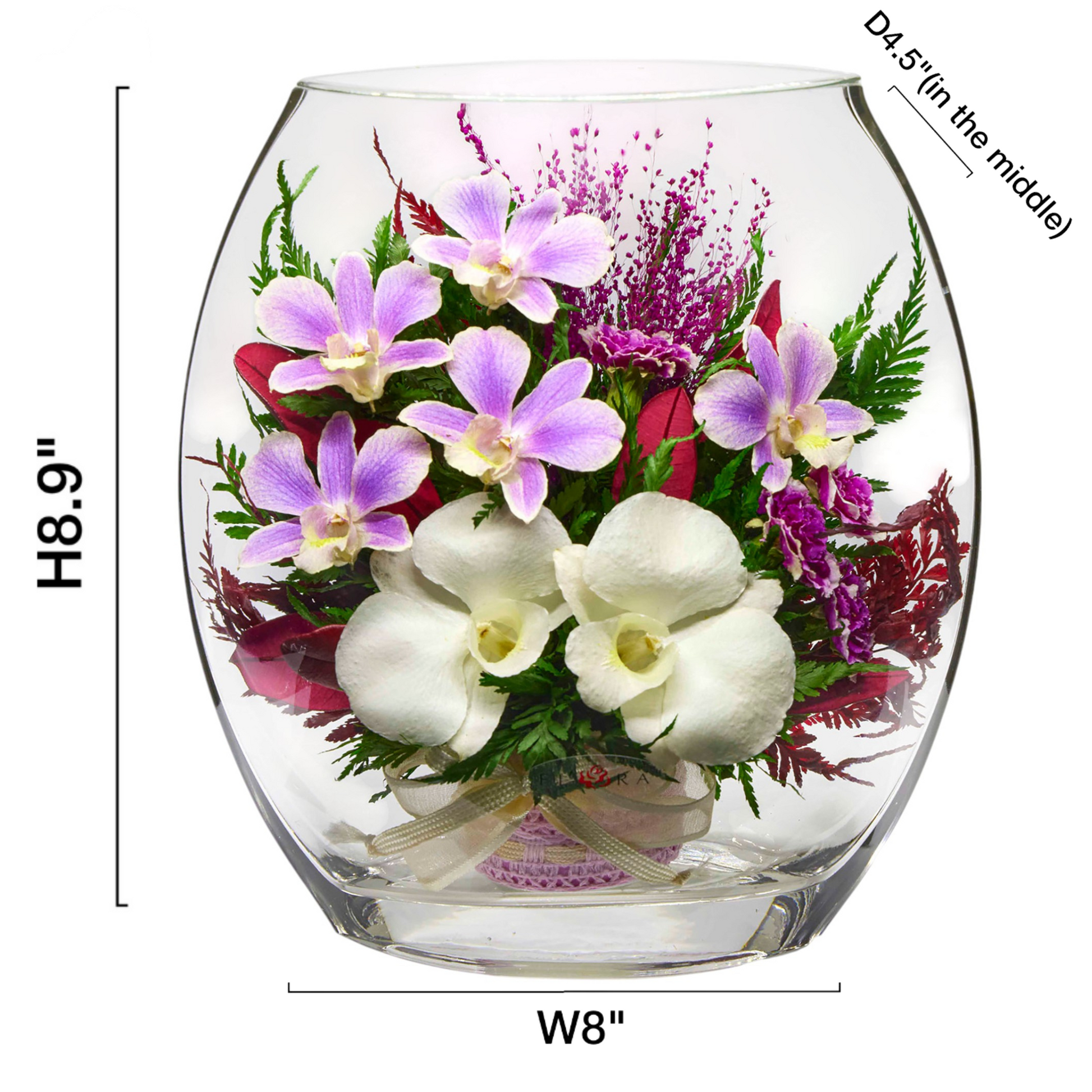 Note: Each arrangement is 100% handmade with natural flowers, so slight variations in color and size ensure every piece is one-of-a-kind. Keep away from direct sunlight to enjoy its beauty even longer.