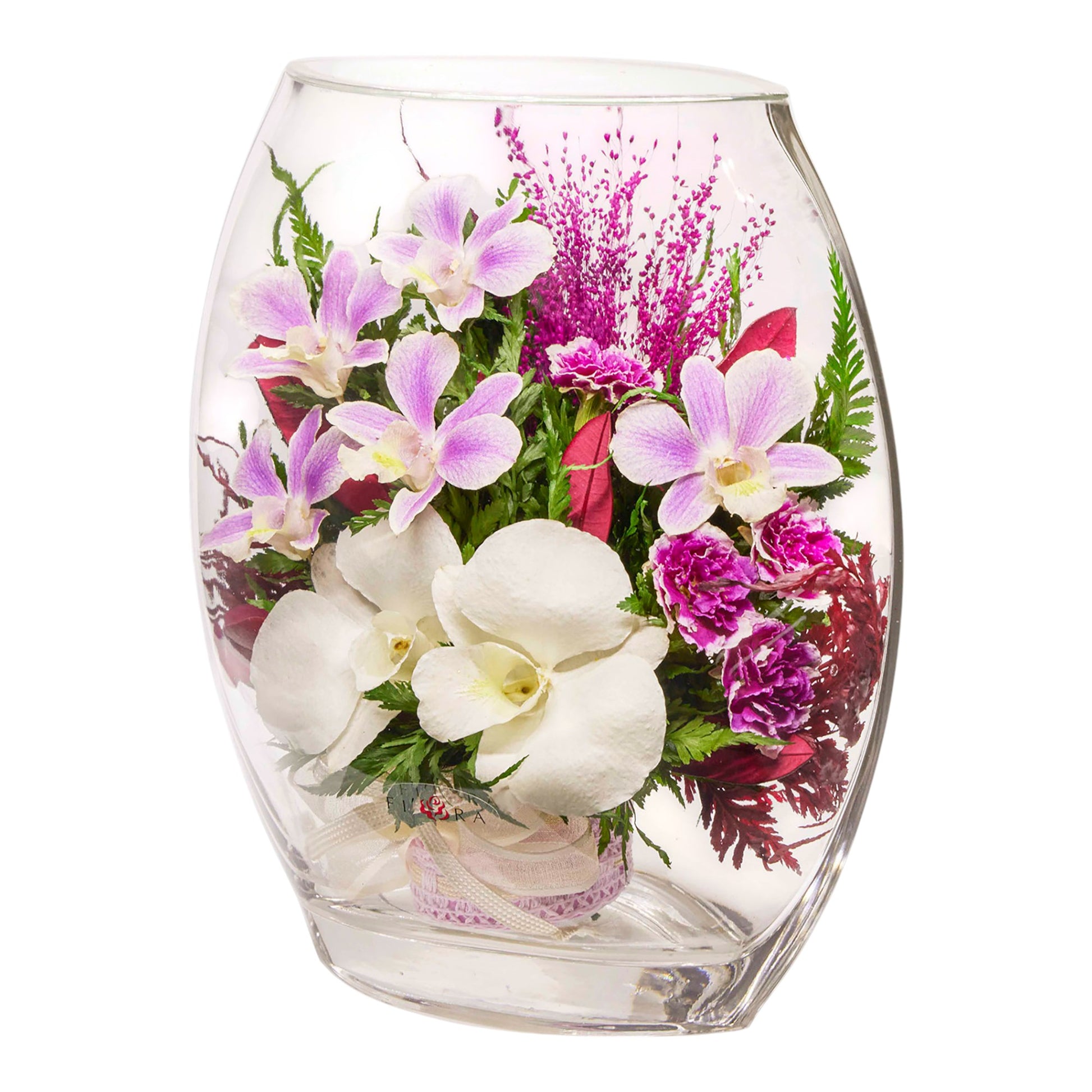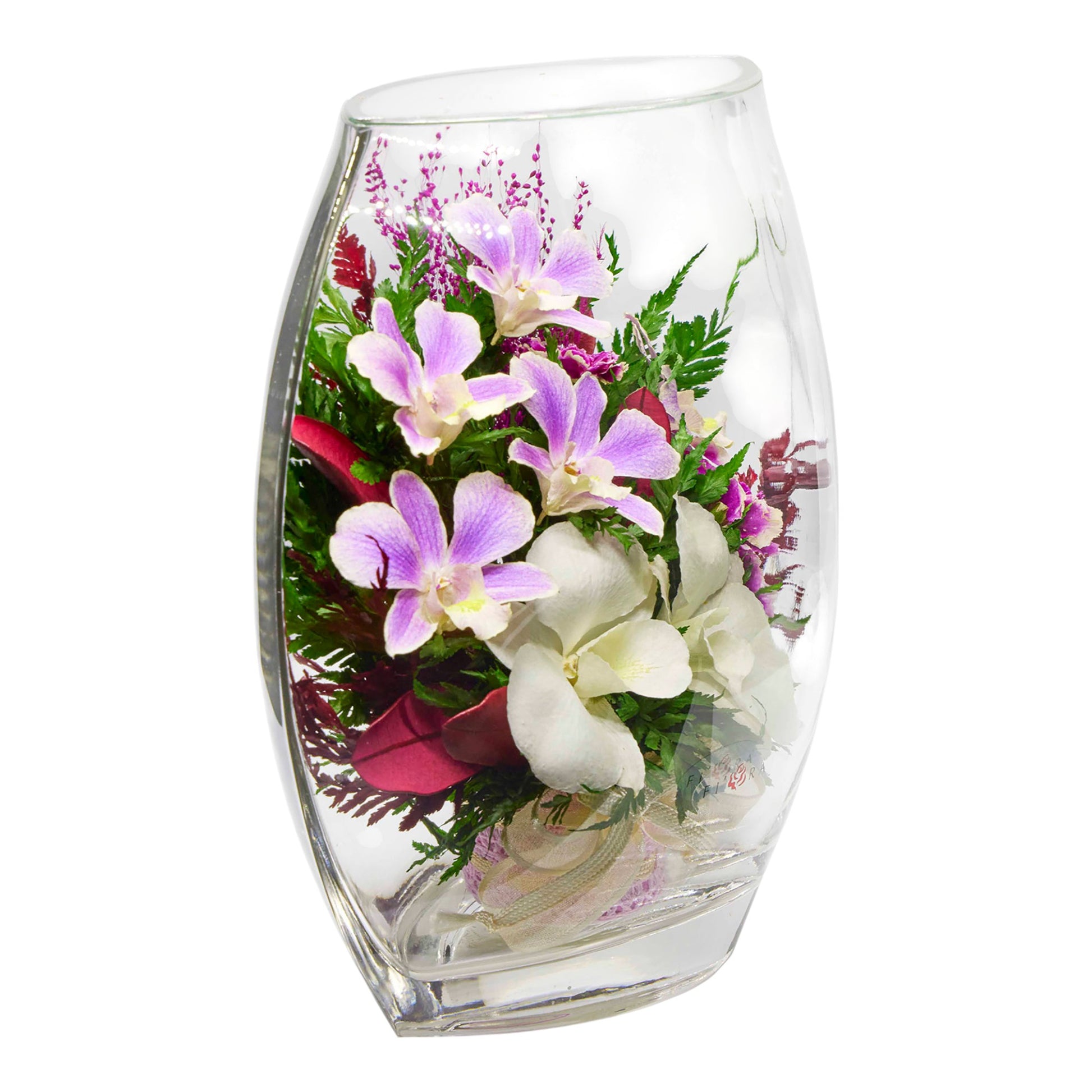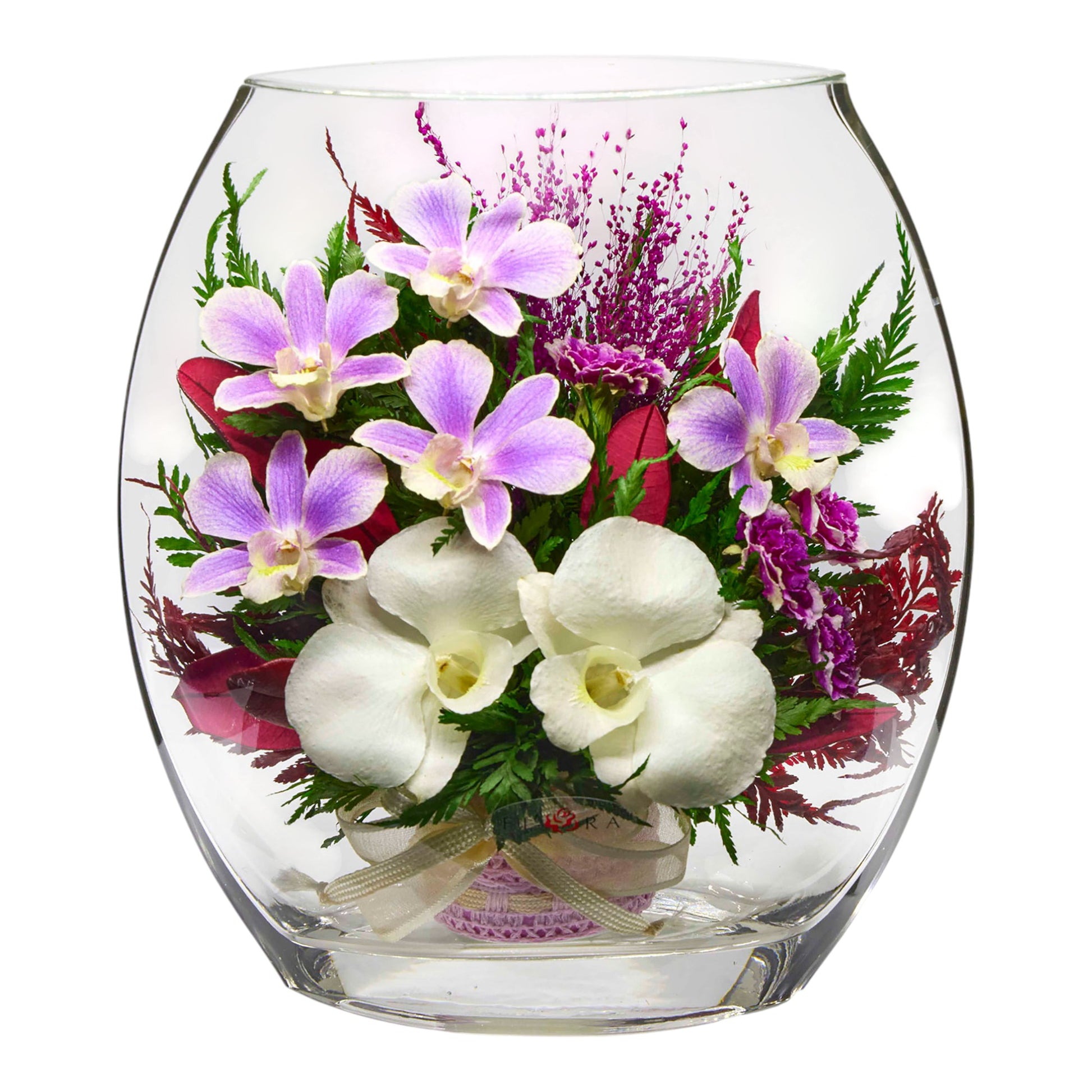 Graceful Purple and White Orchids in Flat Rugby Glass Vase