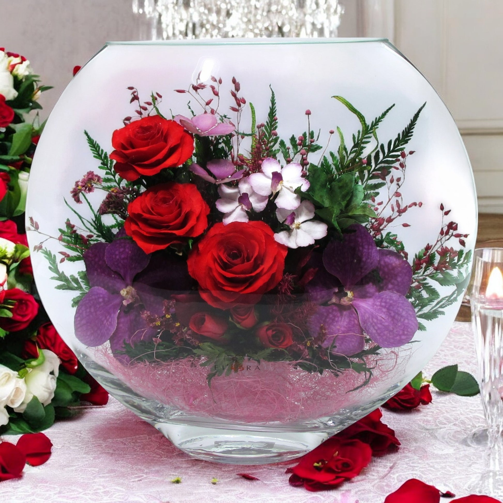 Enigma: Timeless Elegance with Premium Preserved Roses in Glass Vase – Lasts 5 Years, Perfect for Gifts and Decor